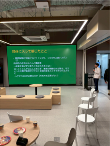 そのほかにも、学生それぞれの活動紹介やイベント情報の共有、キャリアに関する案内に加え、金沢での冬を乗り越えるためのメンタルヘルスに関する情報交換も行われました。私自身もフードロス削減に取り組んでおり、当日は仲間がその活動内容や現在の取り組み状況について発表しました。
