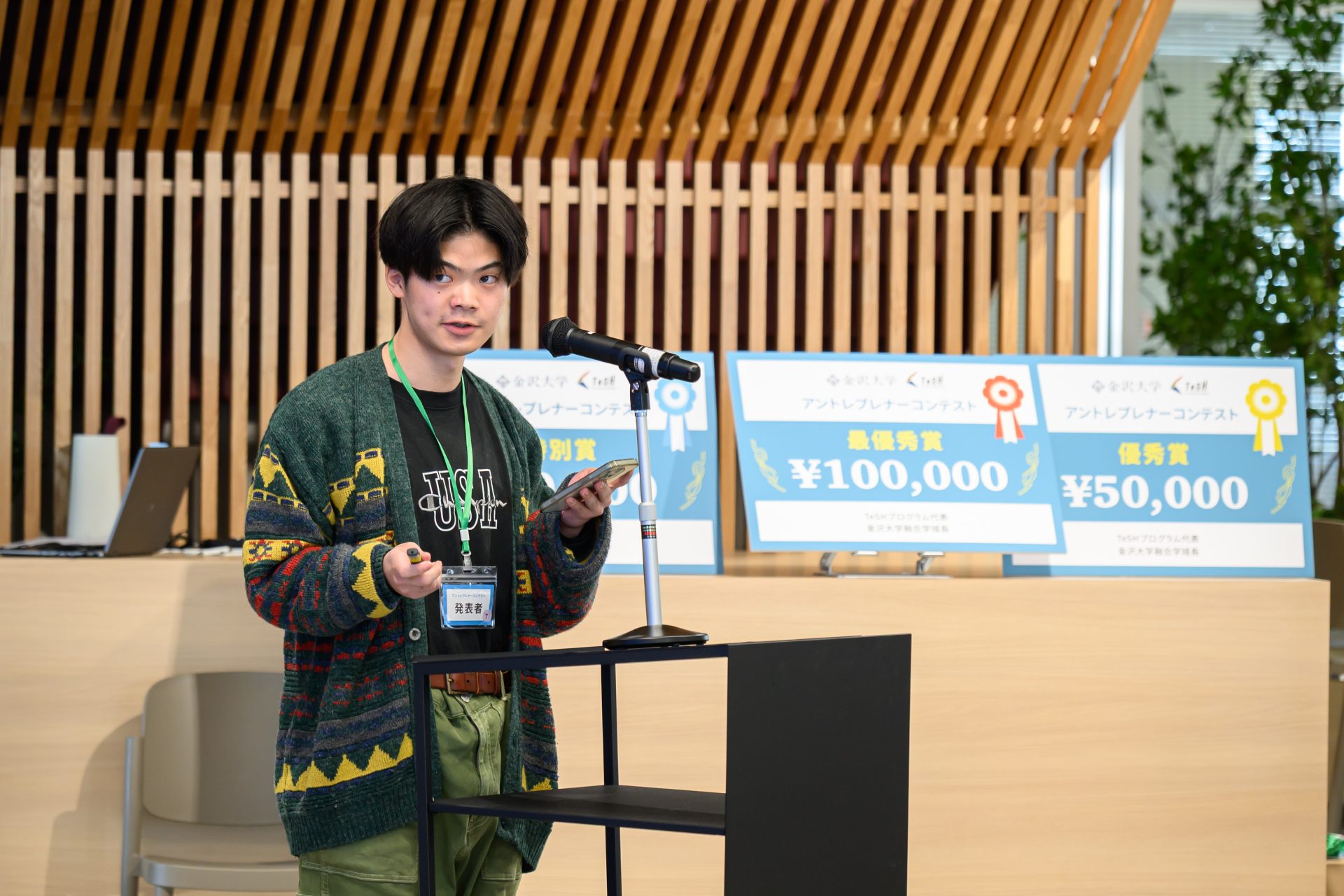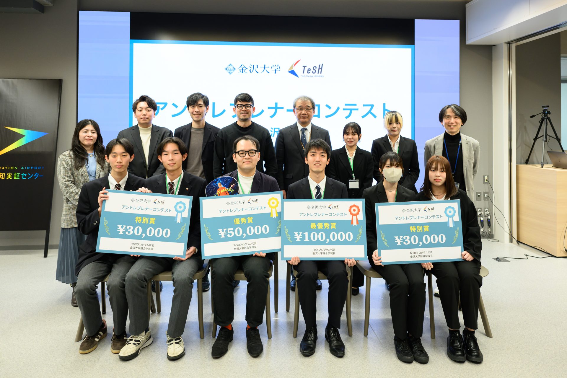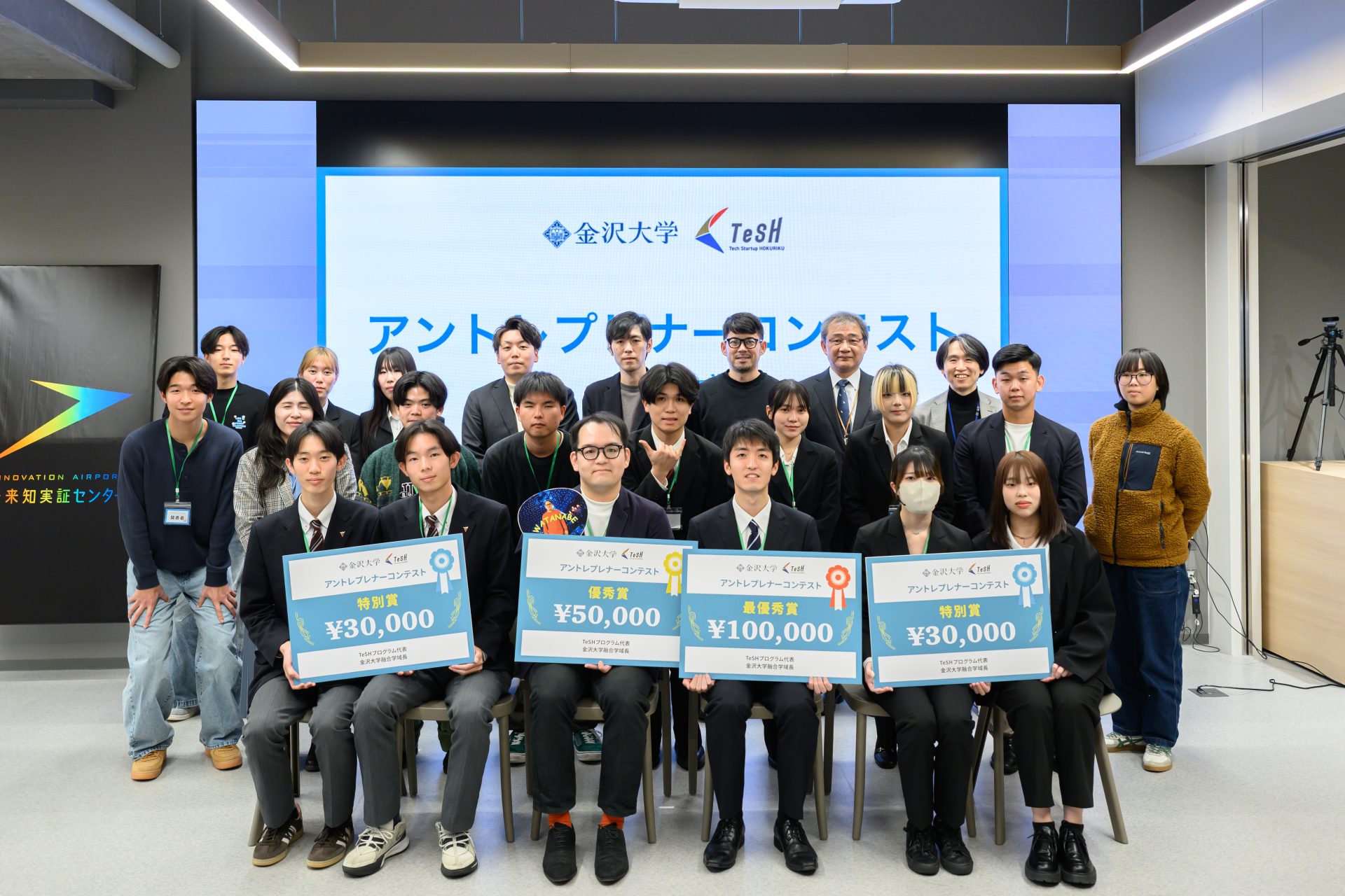 2025年12月20日、金沢大学融合学域とTeSH(Tech Startup HOKURIKU)の共催により、未来知実証センターにて「アントレプレナーコンテスト@金沢大学」を開催しました。